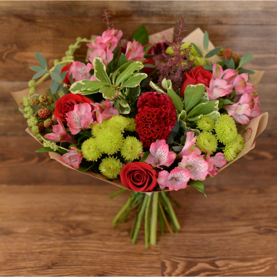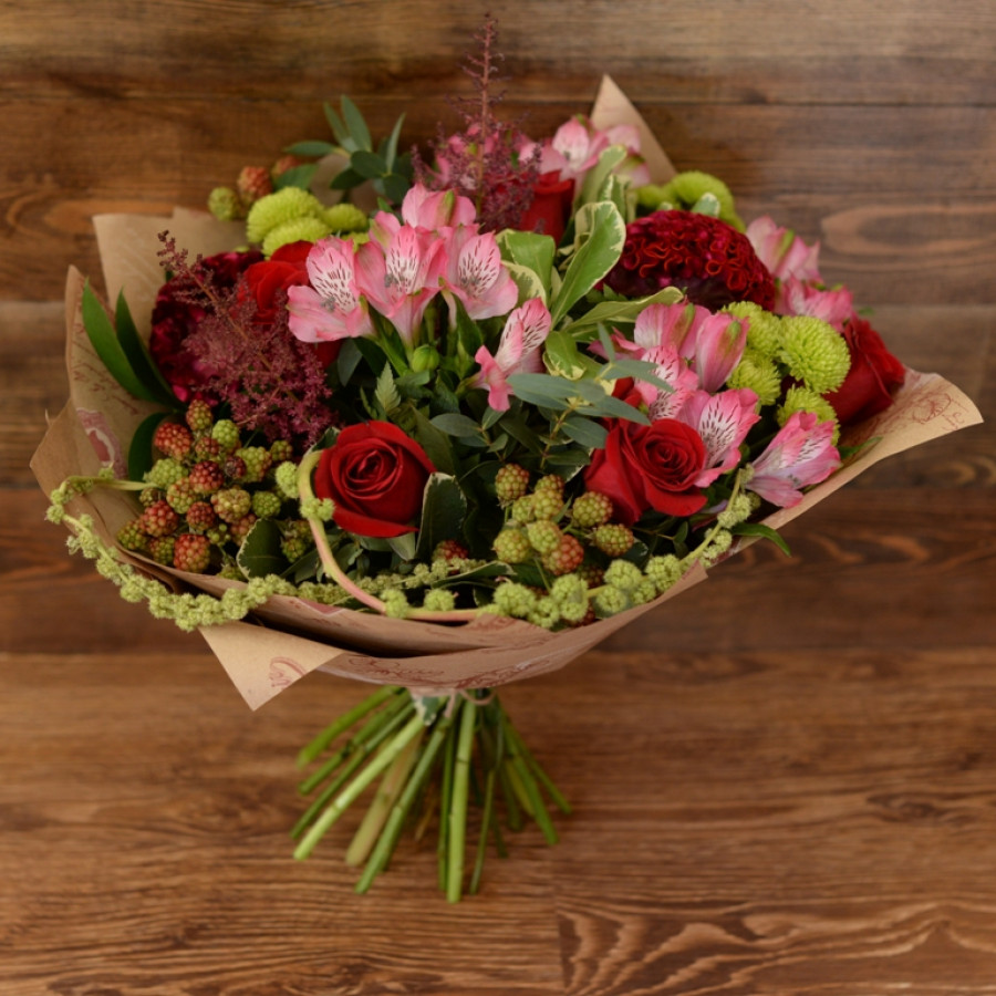 Перед выездом курьера пришлём фото свежесобранного букета, чтобы вы были спокойны